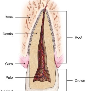 If a crown fracture involving the pulp (complicated crown fracture) occurs in a tooth of a young patient where the root of the tooth is not fully developed (open apex), then everything will be done to ensure the remaining pulp stays healthy and bacteria free (vital pulp therapy). A healthy pulp is what will allow the tooth and root to fully develop.
